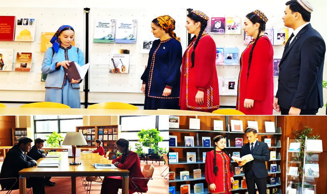 В библиотеке Туркменской национальной консерватории имени Майи Кулиевой прошёл ознакомительный тур по отделам и беседа «Путешествие в мир книг». Об этом передает новостной сайт Turkmenportal.