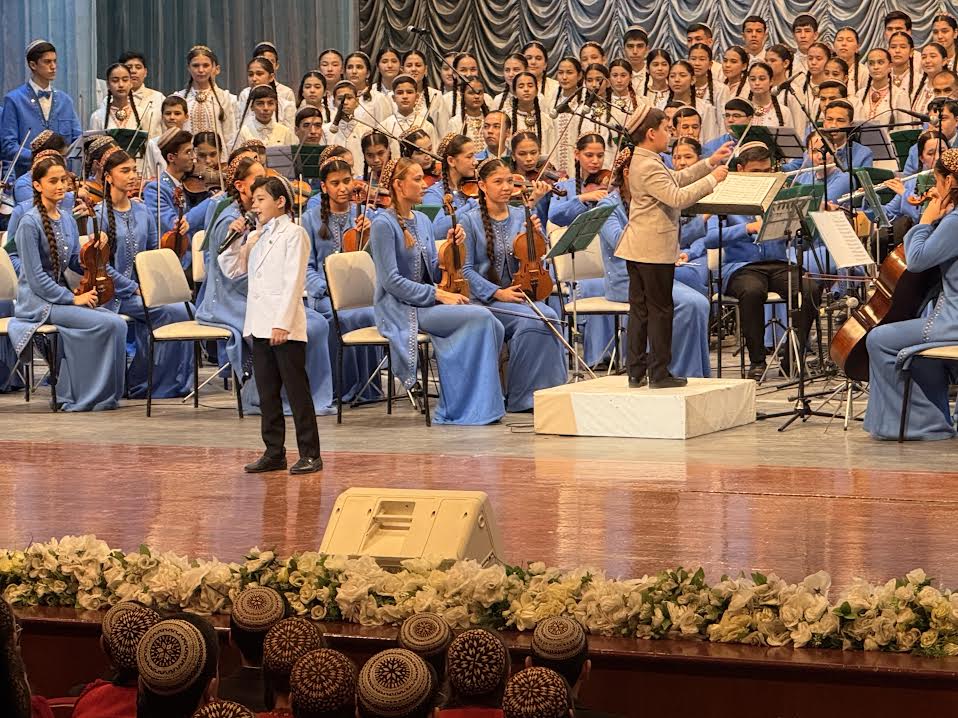 На сцене выступил большой сводный симфонический оркестр, в котором приняли участие талантливые учащиеся различных музыкальных учреждений страны. Среди них — воспитанники Специальной музыкальной школы имени Данатара Овезова при Национальной консерватории имени Маи Кулиевой, а также юные музыканты из детских школ искусств Ашхабада и города Аркадаг.