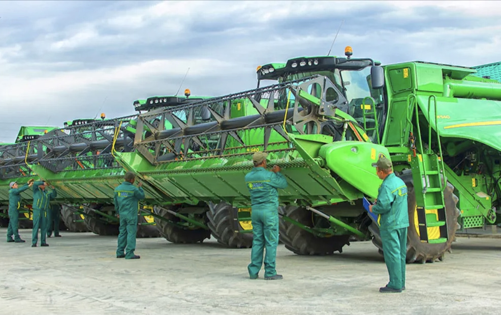 Хлопкоуборочные комбайны John Deere 9970, оснащённые электроникой с 2017 года, составляют основу механизированной уборки хлопка. Зерноуборочные комбайны германской компании Claas модели Tukano-430, которых насчитывается около 1300 единиц, представляют компактную версию премиального Lexion.