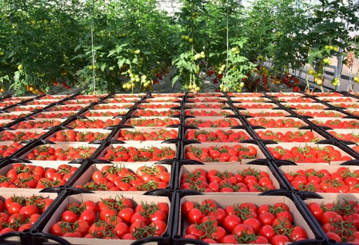 Сбор урожая помидоров начался в ноябре прошлого года. На сегодняшний день уже собрано более 130 тонн продукции. В целом по предприятию до июня следующего года планируется собрать около 700 тонн помидоров. На данный момент 33 процента урожая реализовано на внутреннем рынке. Кроме того, продукция экспортируется в Российскую Федерацию и Республику Казахстан. Отдельного внимания заслуживает тот факт, что пластиковая тара для упаковки помидоров изготавливается непосредственно на самом предприятии.