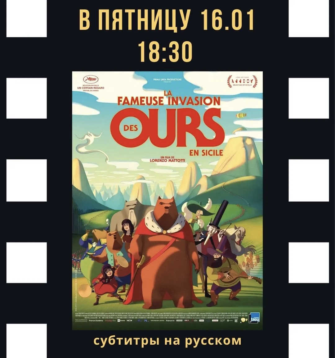 Французский институт в Ашхабаде приглашает зрителей на показ анимационного фильма «Невероятное нашествие медведей на Сицилию», который состоится 16 января в 18:30, сообщает turkmenportal.