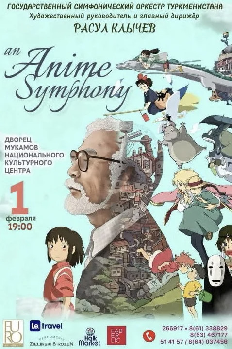 В этот вечер оркестр исполнит симфонические произведения из культовых японских анимационных фильмов, покоривших зрителей по всему миру. В программе — музыкальные темы из аниме «Мой сосед Тоторо», «Унесённые призраками», «Ведьмина служба доставки», «Рыбка Поньо на утёсе», а также других популярных работ.