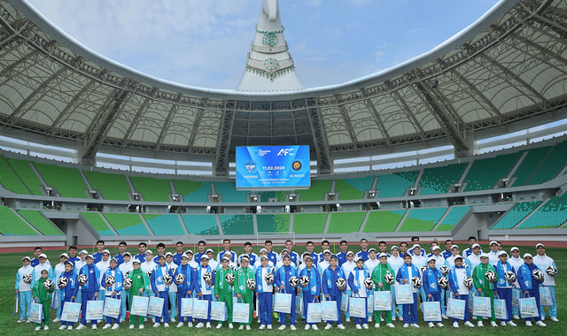 Юные спортсмены посетили Олимпийский стадион и наблюдали за тренировкой футбольного клуба «Arkadag» перед матчем 1/8 финала Лиги чемпионов АФК-II с командой «Аль-Наср» из Саудовской Аравии. Стадион рассчитан на 45 тысяч зрителей.