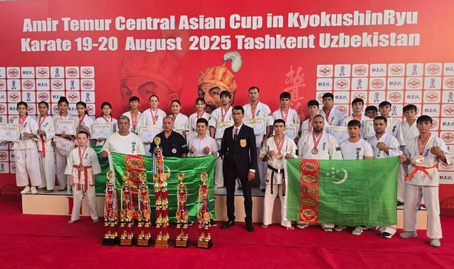 С 18 по 20 августа в Ташкенте прошёл Кубок Центральной Азии по киокушинкай карате. Сборная Туркменистана завоевала 24 медали: 6 золотых, 4 серебряных и 14 бронзовых, передает новостной сайт Turkmenportal.