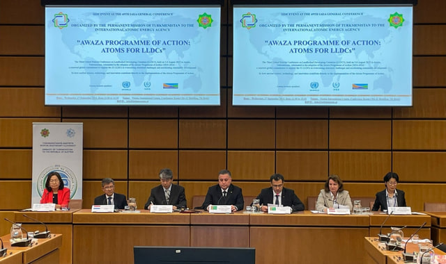 17 сентября в Вене Постоянное Представительство Туркменистана при МАГАТЭ провело параллельное мероприятие «Awaza Programme of Action: Atoms for LLDCs» в рамках 69-й Генеральной Конференции МАГАТЭ, посвящённое итогам Третьей Конференции ООН по странам, не имеющим выхода к морю. Об этом сообщает пресс-служба МИД Туркменистана.