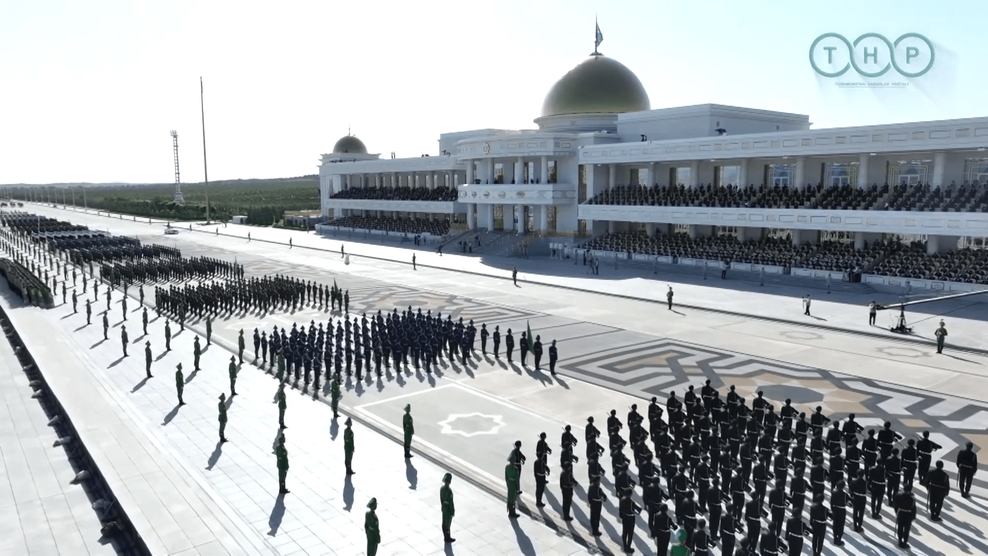 Торжественное шествие открыл военный парад. Чеканя шаг, по площади прошли военнослужащие всех родов войск Вооружённых Сил Туркменистана, показав высокий профессионализм и выучку.