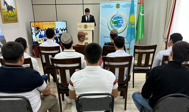 На встрече присутствовали студенты Каспийского университета технологий и инжиниринга имени Ш.Есенова, граждане Туркменистана, проживающие в Мангистауской области, и представители общественности.