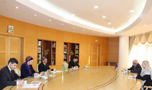 На встрече обсудили развитие сотрудничества Туркменистана с ЕС в политико-дипломатической, торгово-экономической и культурно-гуманитарной сферах.