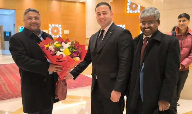 В аэропорту дипломата встретили посол Индии в Туркменистане и представители туркменского правительства.