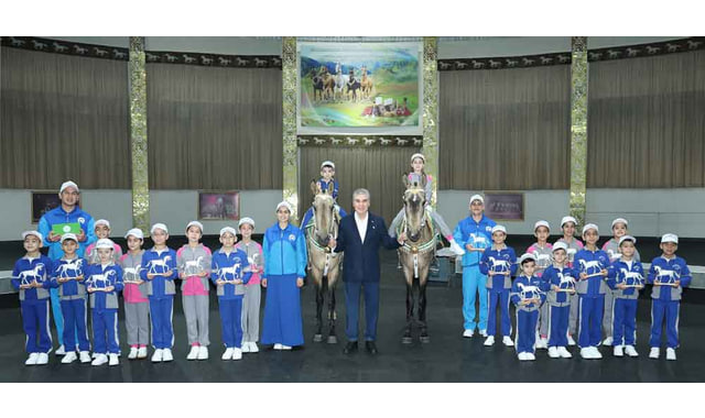 Герой-Аркадаг встретился с воспитанниками Учебного центра «At–myrat» и членами Группы национальных конных игр «Galkynyş». Гурбангулы Бердымухамедов ознакомился с их деятельностью и выступил перед участниками.