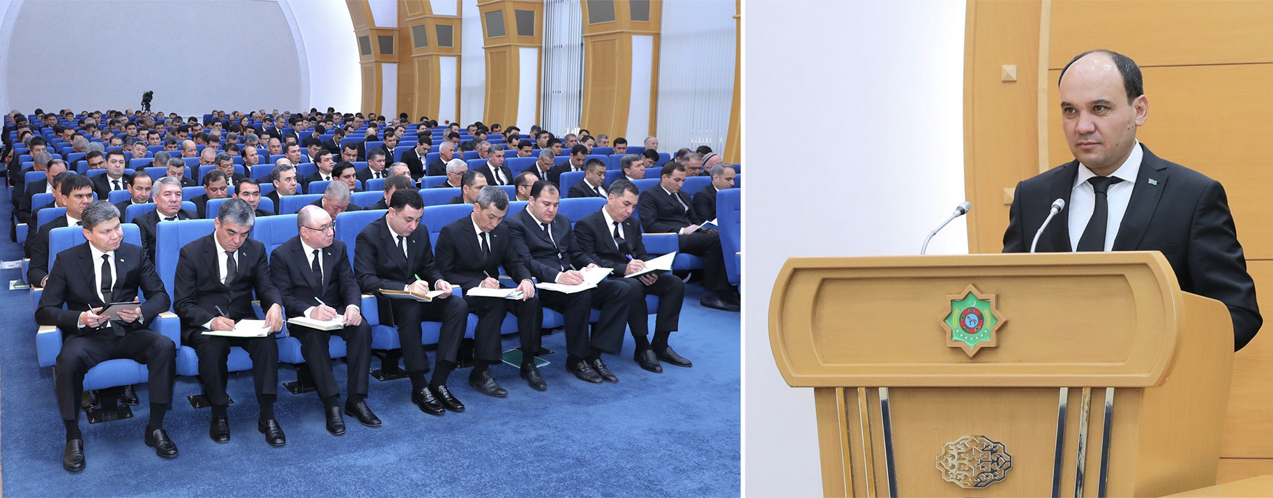 В ходе совещания с отчётами о результатах работы за первый месяц года и предстоящих задачах выступили Государственный министр Туркменистана — председатель государственного концерна «Туркменгаз» Максат Бабаев, генеральный директор компании «TAPI Pipeline Company Limited» Мухамметмырат Аманов, председатель государственного концерна «Туркменнебит» Гуванч Агажанов, председатель государственной корпорации «Туркменгеология» Гурбангелди Гарлыев, а также руководители объединений, управлений и предприятий комплекса.