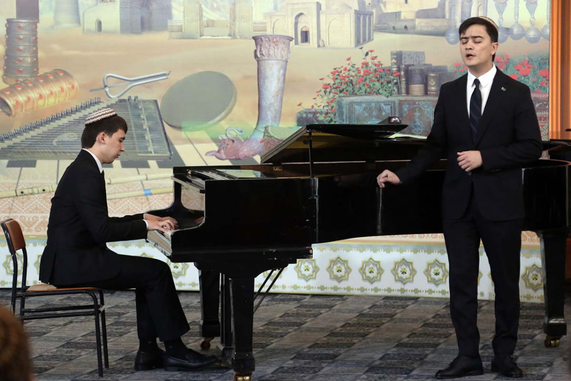 Студенты подготовили к мероприятию концертную программу. Вокалист Саха Аллаяров и пианист Джемшит Акыеев исполнили песни на стихи Эзизова с музыкой Данатара Хыдырова, в том числе «Uzak ýaýladaky enäniň hüwdüsi» и «Özgelere dunledem». Композитор также присутствовал на встрече.