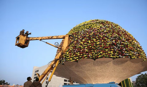 Арт-объект стал центральным элементом ежегодной цветочной выставки на набережной реки Сабармати.