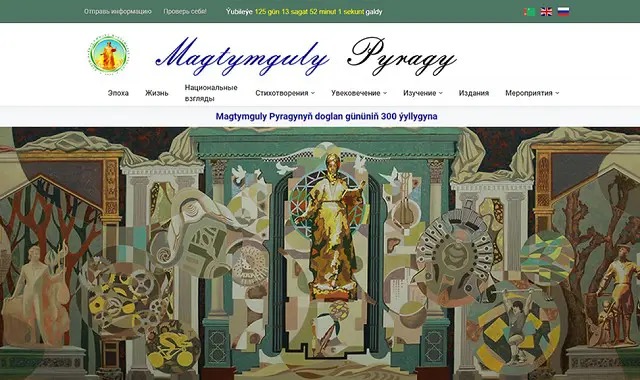-Веб-сайт, содержащий разделы "Эпоха" и "Жизнь", предлагает интернет-пользователям доступ к обширной информации о жизни и творчестве Махтумкули Фраги. Помимо этого, на сайте можно найти публицистические статьи о поэте, аудиозаписи его произведений. Медиатека сайта включает в себя документальный фильм от студии "Туркменфильм" имени Огузхана и другие актуальные материалы, посвященные жизни и наследию поэта.